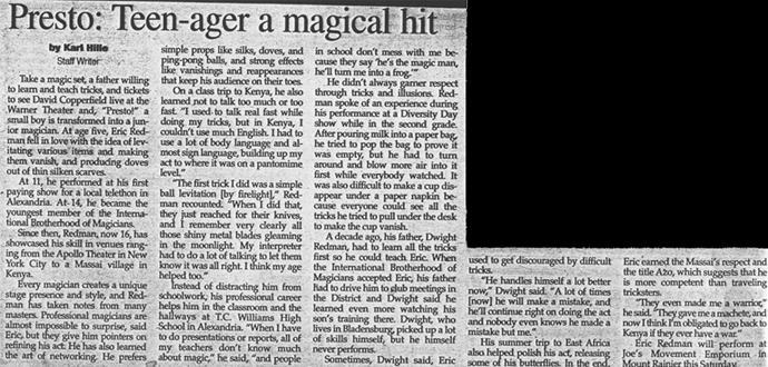Majik in the Media! Here are a few articles from Magazines and Newspapers on my magical career! |